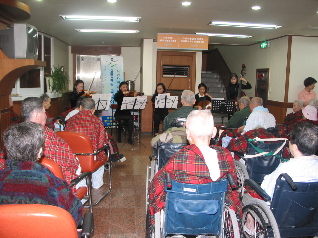 규림병원은 지난 2005년 12월 03일 환우들을 위한 음악치료의 일환으로서, 을숙도 교향악단 청사포 현악 5중주단을초청 공연하였습니다.규림병원 1층 로비에서 개최된 이번 음악회에서는 환우와 환우의 가족, 그리고, 외래객들이 잠시 발걸음을 멈추고, 아름다운 음악과 환상적인 연주를 감상하는 시간이 되었으며, 온갖 시름을 떨쳐버리며 활력을 되찾는 소중한 시간이었습니다.