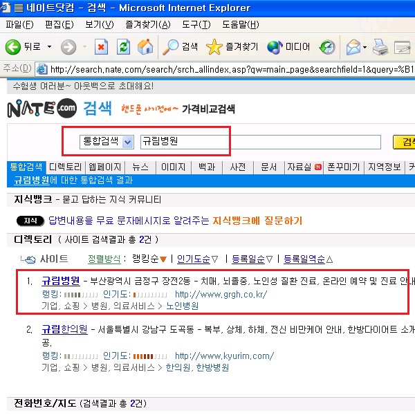 규림병원 검색엔진 등록현황 2 : 네이트닷컴(w...