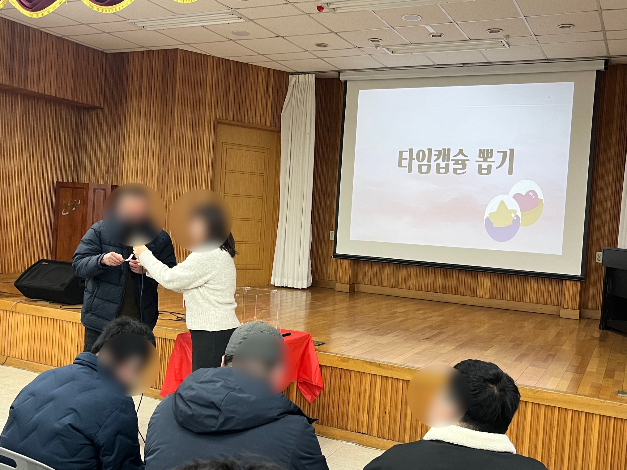 직업재활반은 음악으로 새해 소망을 표현하는 시간을 가졌습니다. 회원분들이 1절 분량의 노래를 준비하여 부르며 점수를 확인하고 이를 바탕으로 상품을 드리는 시간을 가졌습니다. 상품은 매점 상품권 2천원으로 챙겨드렸습니다. 이후 직업재활반은 간식으로 샌드위치를 먹으며 행사를 마무리할 수 있는 시간이었습니다.