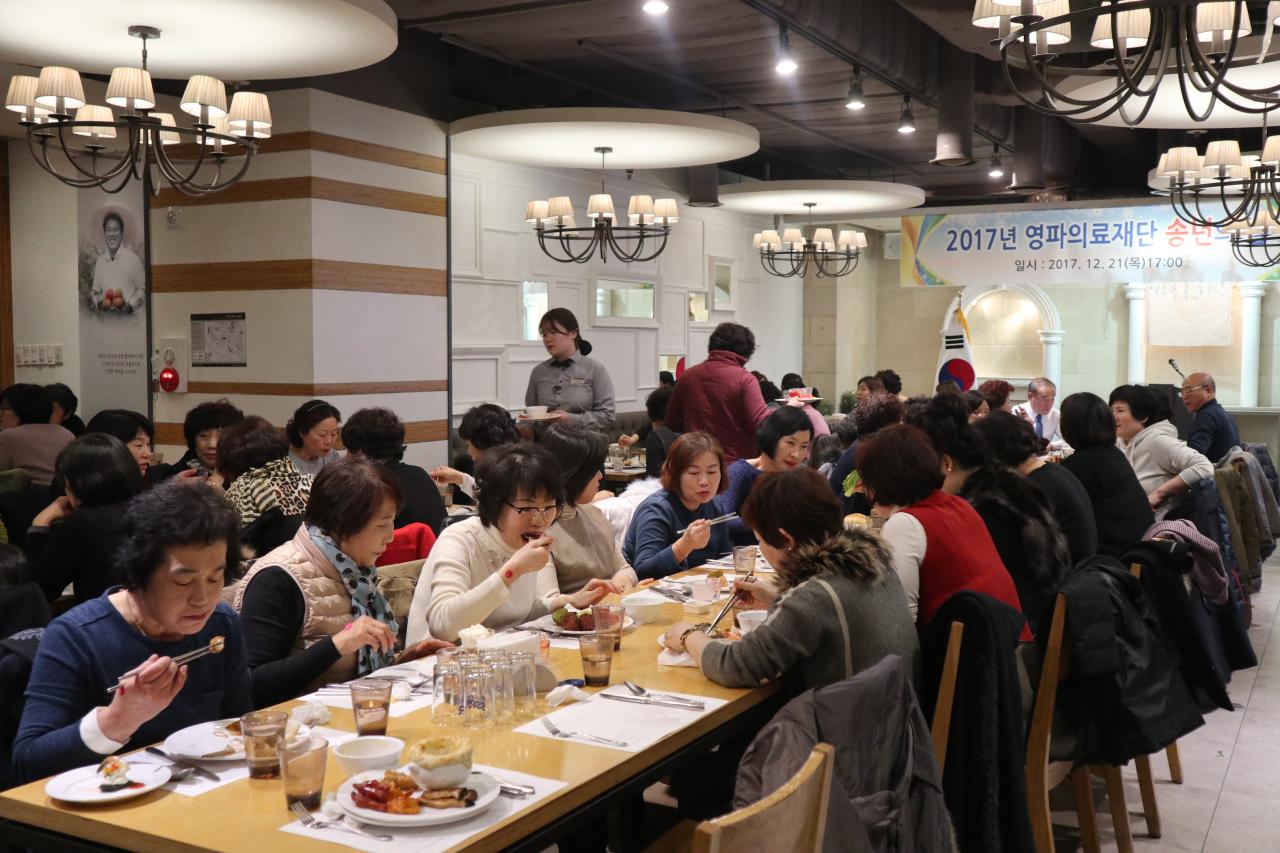 2017년 영파의료재단 송년회 영파의료재단 송년회로 부산네오필하모닉오케스트라 ‘2017 송년음악회,L.v.Beethoven 합창’을 관람하였습니다. 연말느낌이 물씬나는 음악으로 가득한 아름다운 밤이었습니다. 부쩍 날씨가 추워졌지만 영파직원분들과 함께하여 따뜻했습니다. - 경영 본부 -