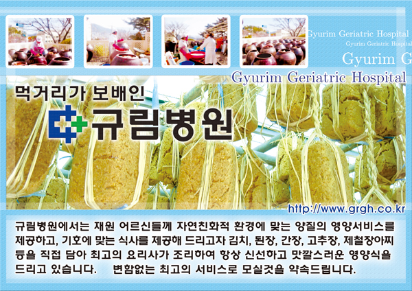규림병원에서는 외식업체로부터 일체부식을 납품받지 않고 된,간장에서 김치에 이르기까지 직접제조, 조리하여