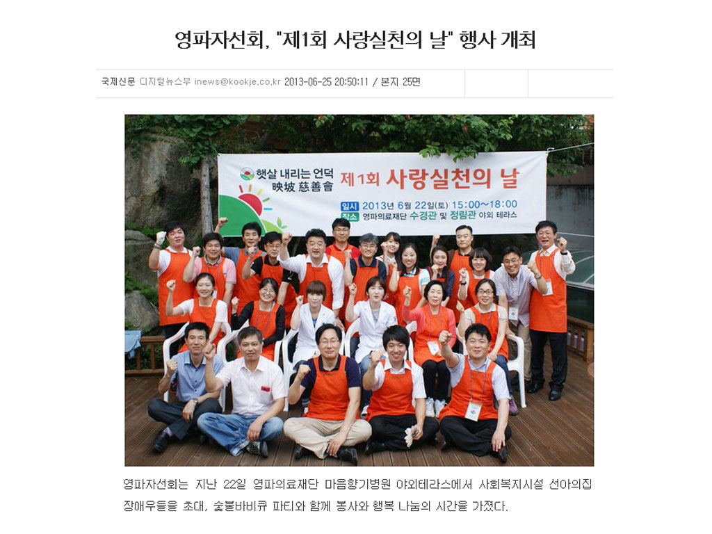 창립 된 영파자선회가 2013년 6월 22일(토) 제1회 사랑실천의날 행사를 가졌습니다.