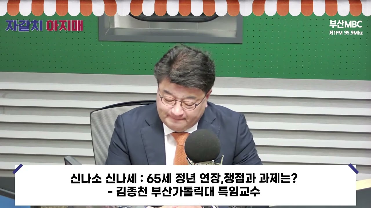 김종천 이사장님의 부산MBC 자갈치아지매 251125 <65세 정년 연장, 쟁점과 과제는?> 방송본입니다.